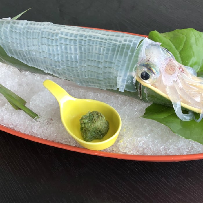 いけすからあげたいかを職人が一杯一杯丁寧に活き造りに仕上げ、そのまま-60℃で急速冷凍しているので、解凍後も鮮度が高く、甘味、旨味が絶品です。