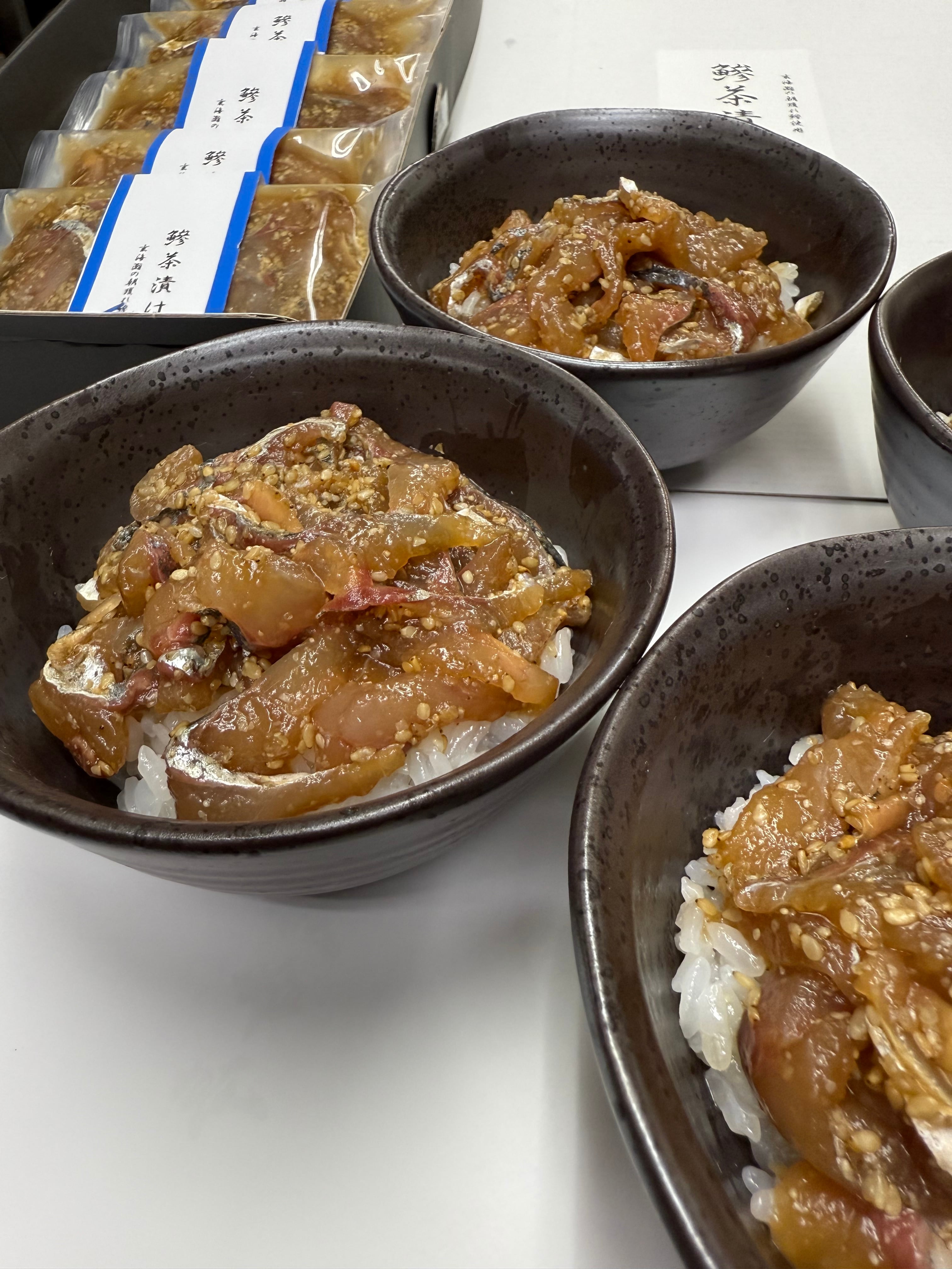 春から夏にかけ脂ののった玄界灘の朝獲れ鯵を使用した本格的な茶漬けが、ご自宅で手軽に楽しめる逸品です。市場で水揚げされた活鰺をそのまま弊社に運び職人が短時間で丁寧に仕上げ、胡麻と生醤油で和えづけにして、いか活き造りと同じ-60度の急速冷凍で凍結させているので、鮮度は抜群です。湯を注ぐだけで、まるでお店で味わうような上質な味わいを堪能できます!忙しい日やちょっとした夜食にもぴったりです。お酒のつまみとしてそのままでも美味しくいただけます。